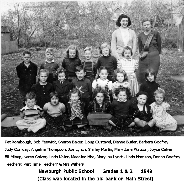 In 1949, Grades 1 & 2 of the Newburgh Public School was housed in the old bank on Main Street in Newburgh, (presently the Abrams Bakery).